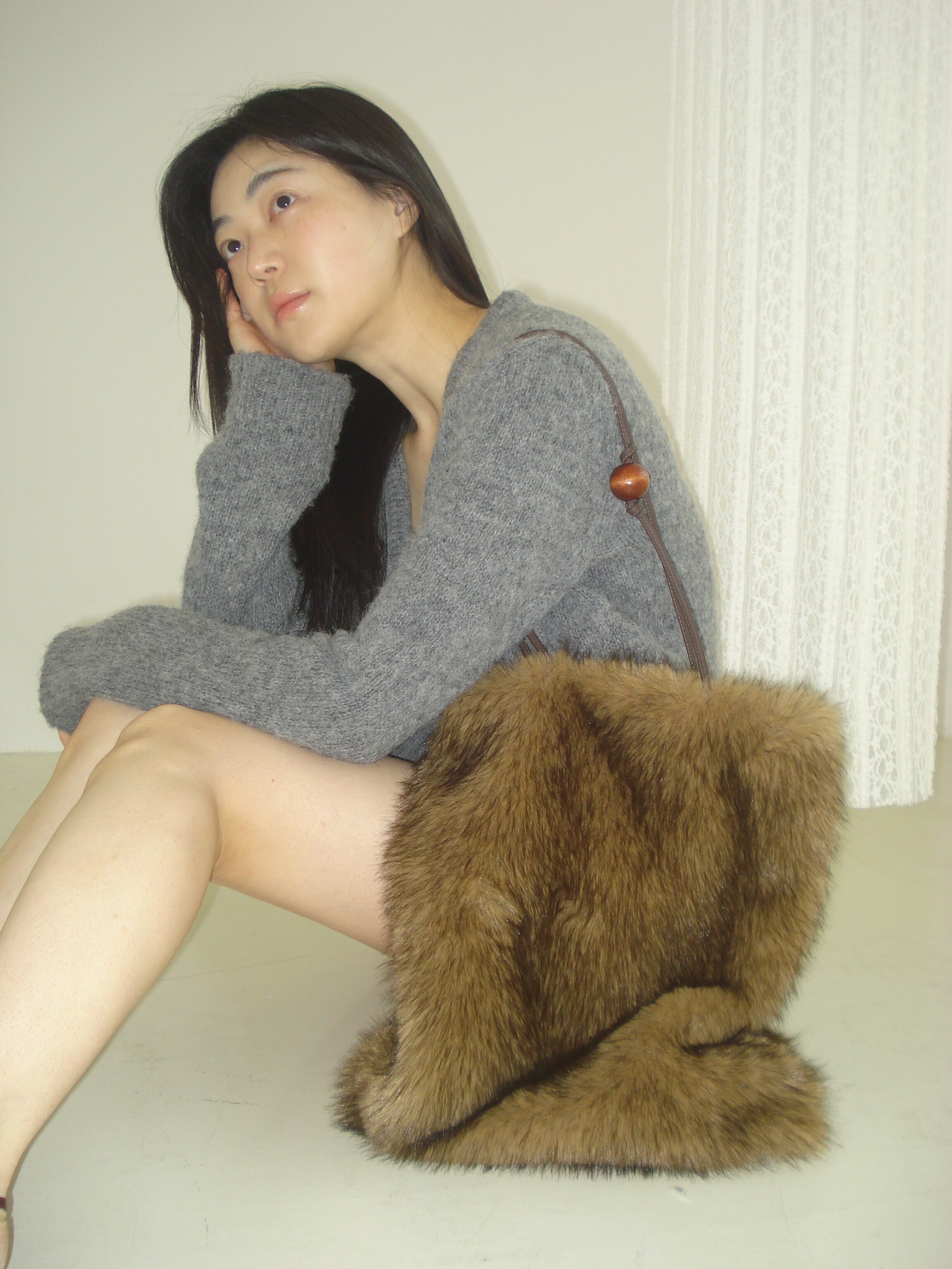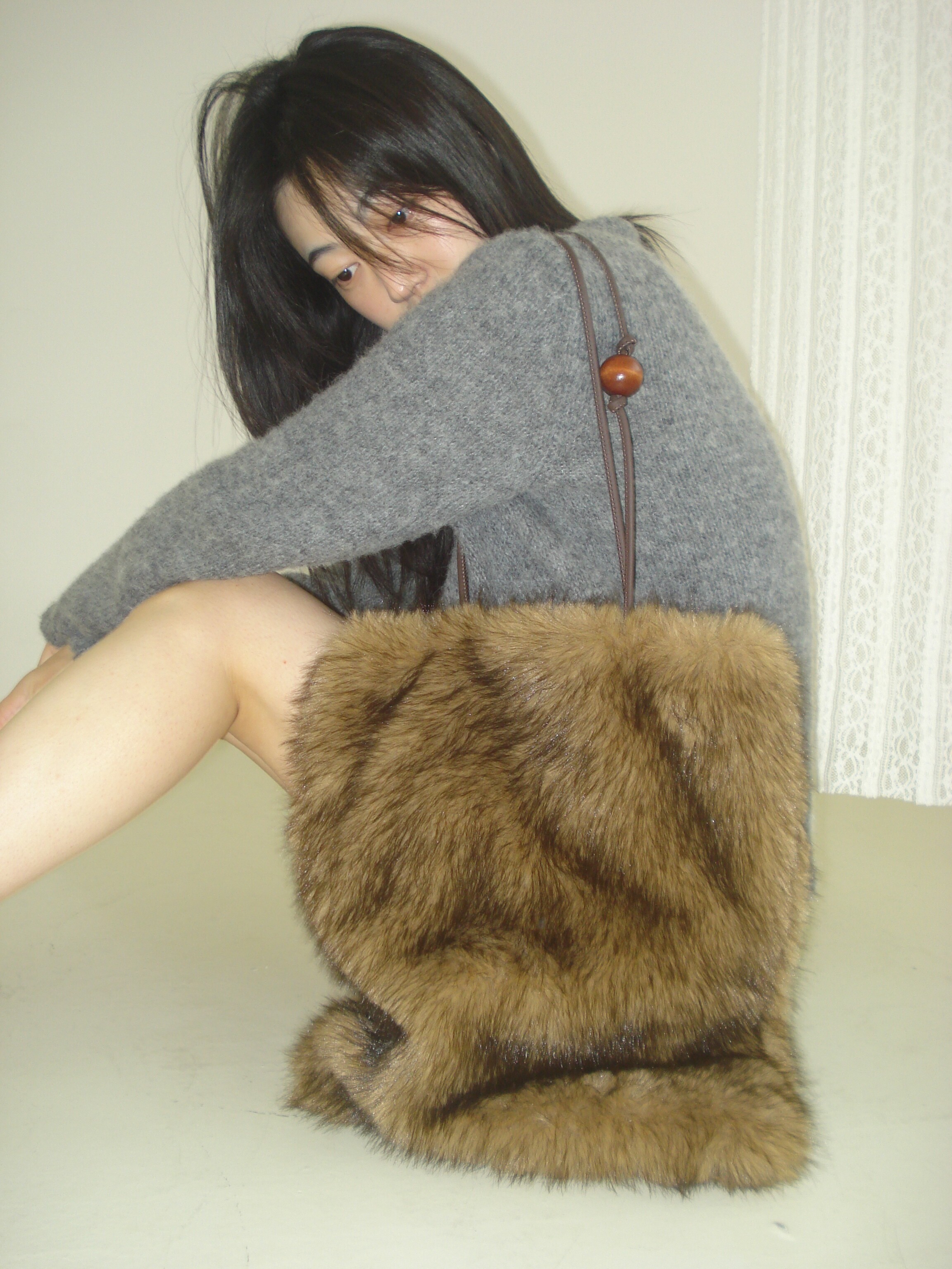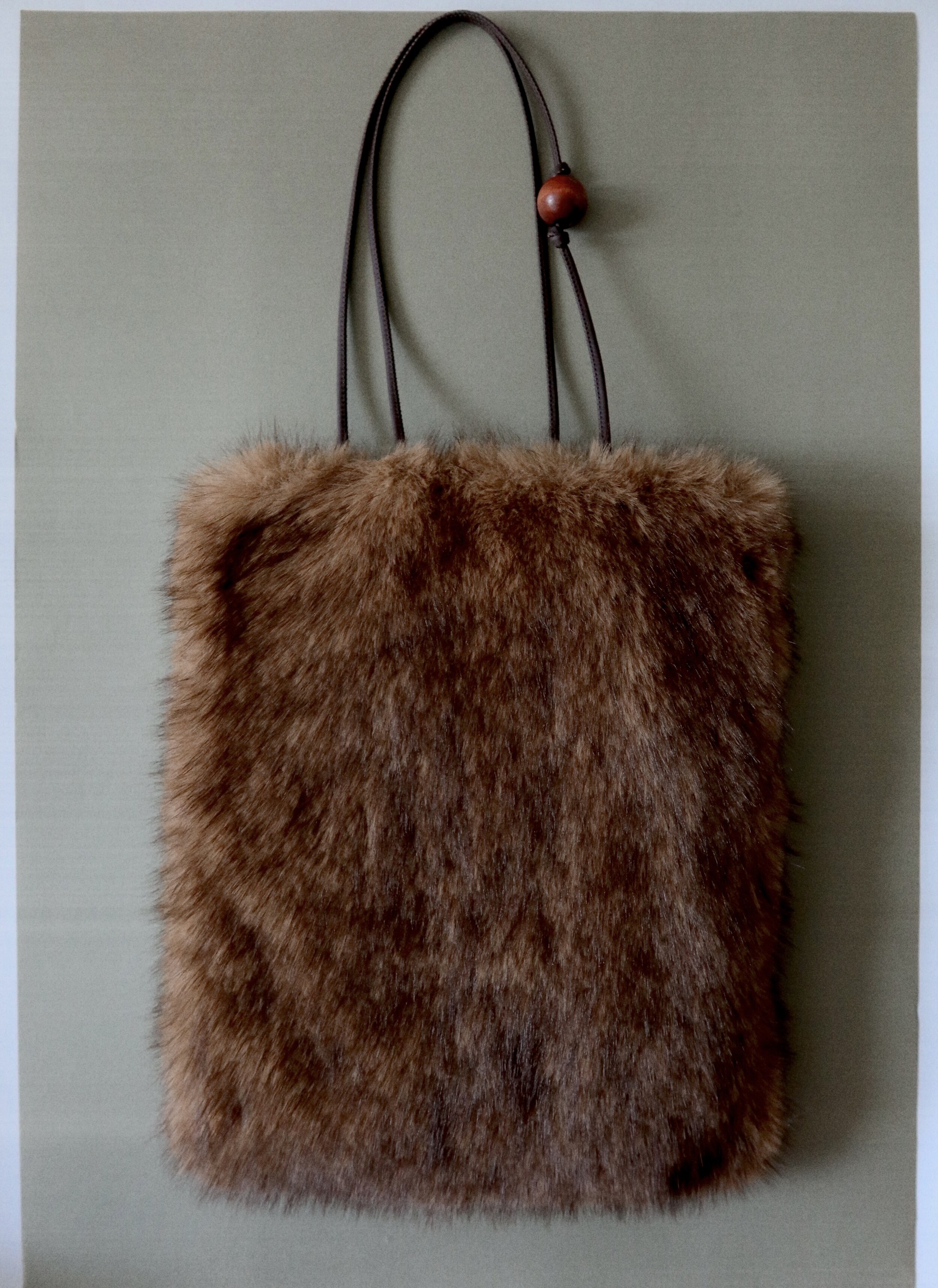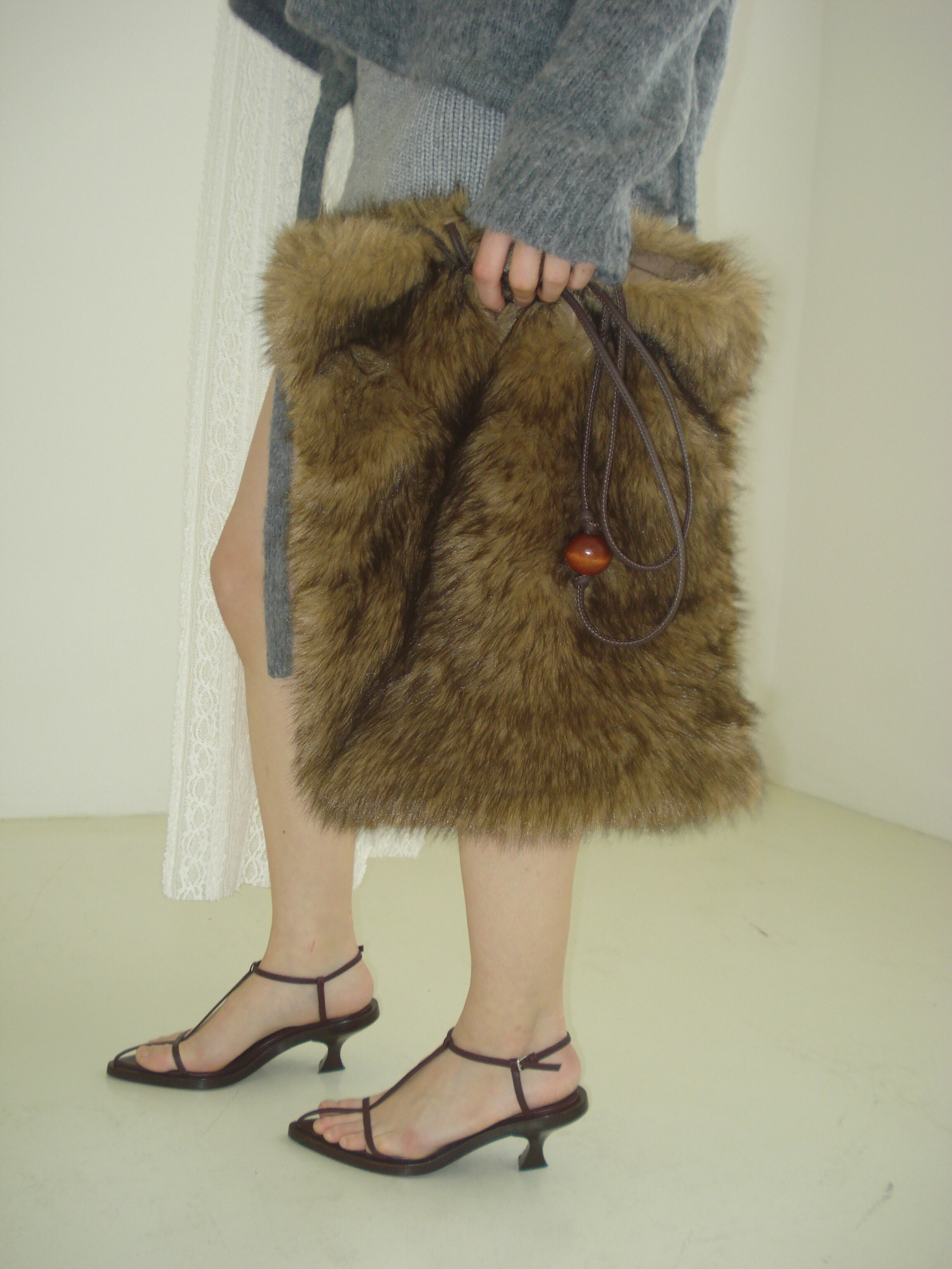 Wood ball Fur bag [Brown]