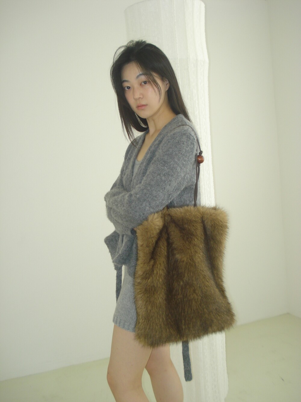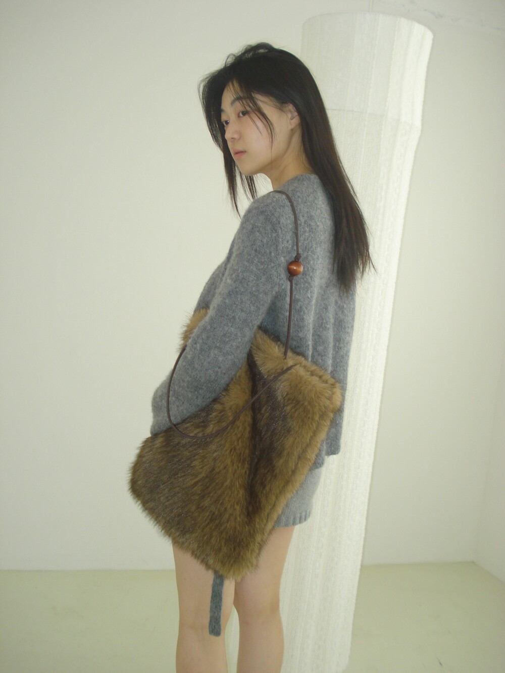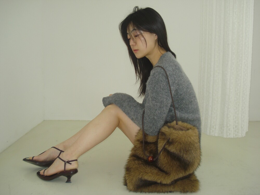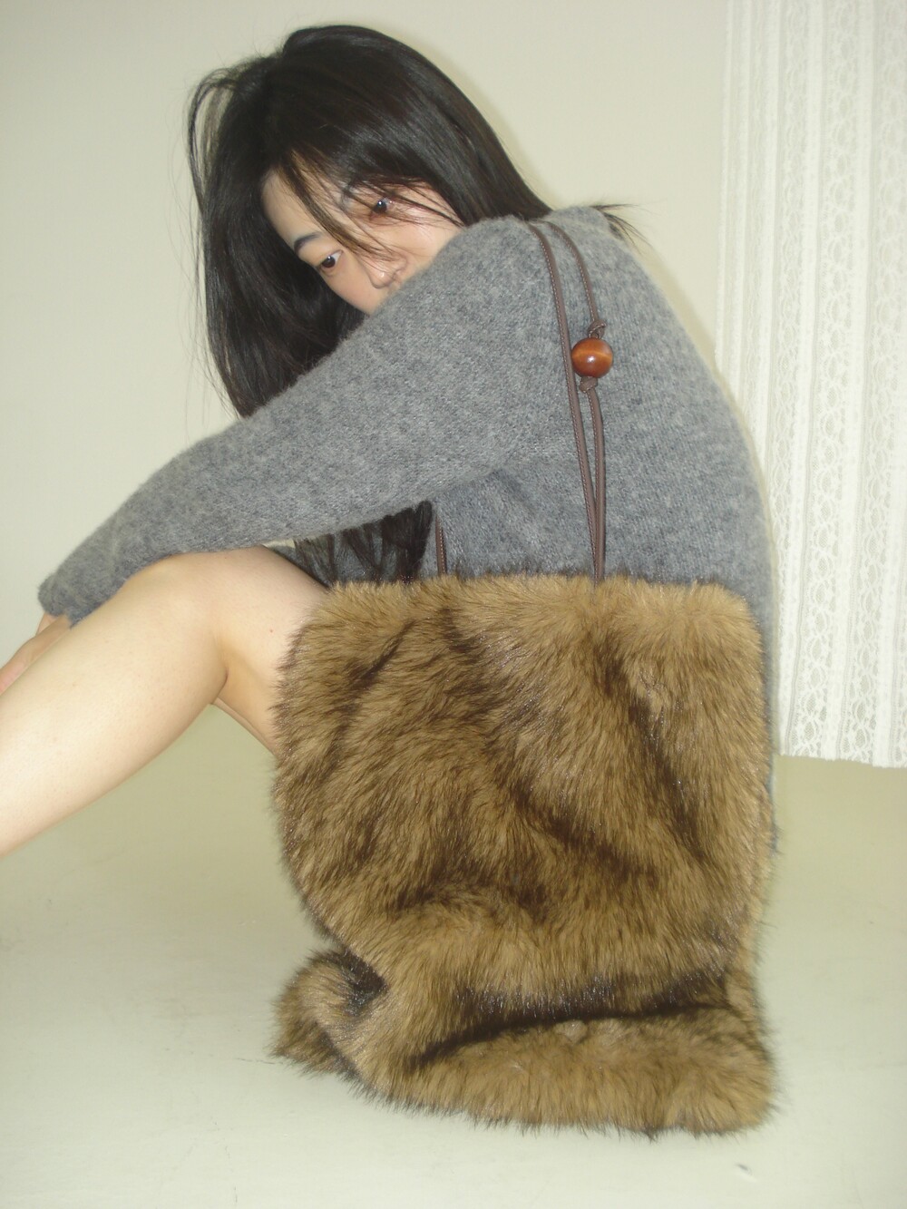 Wood ball Fur bag [Brown]