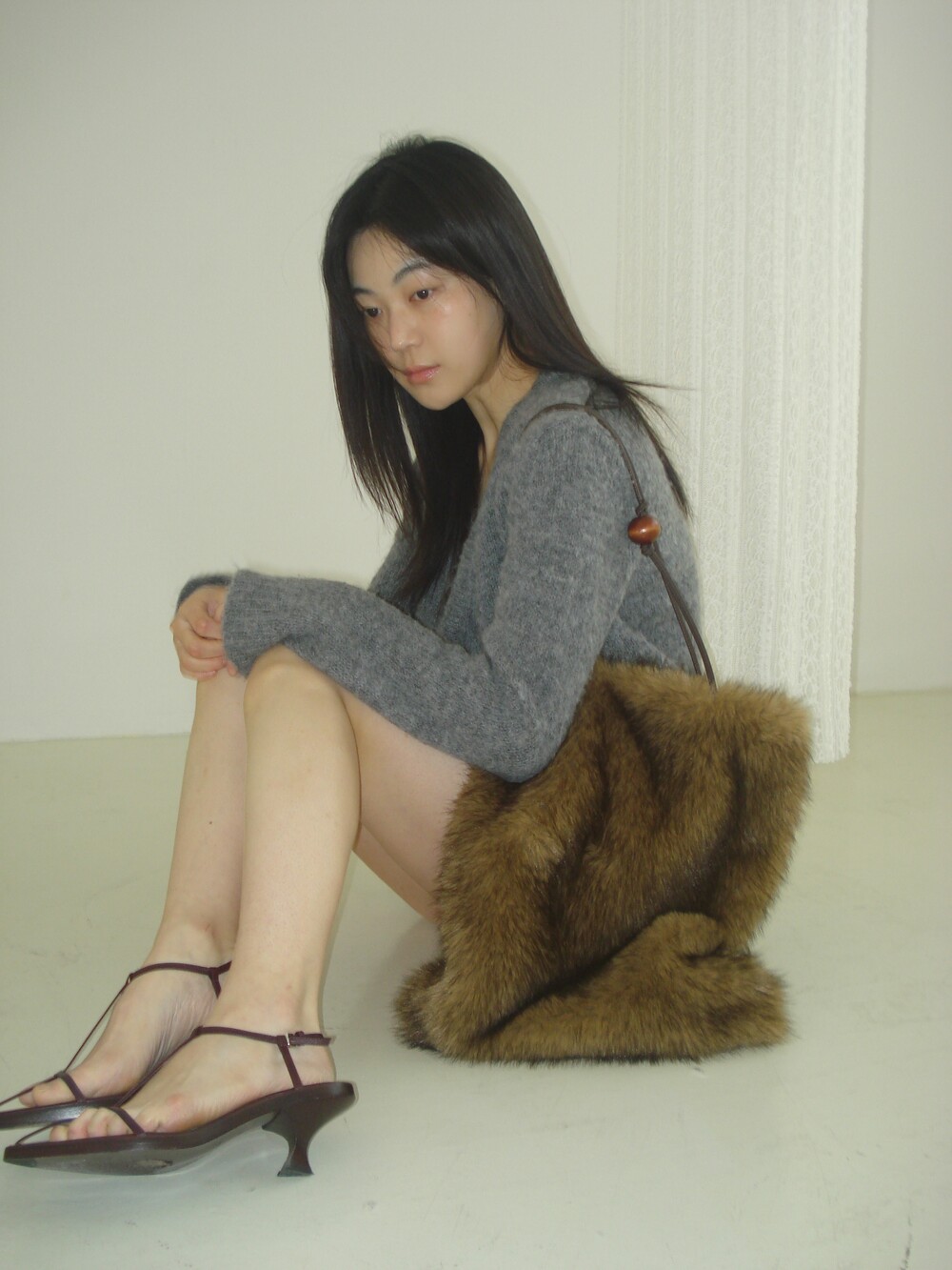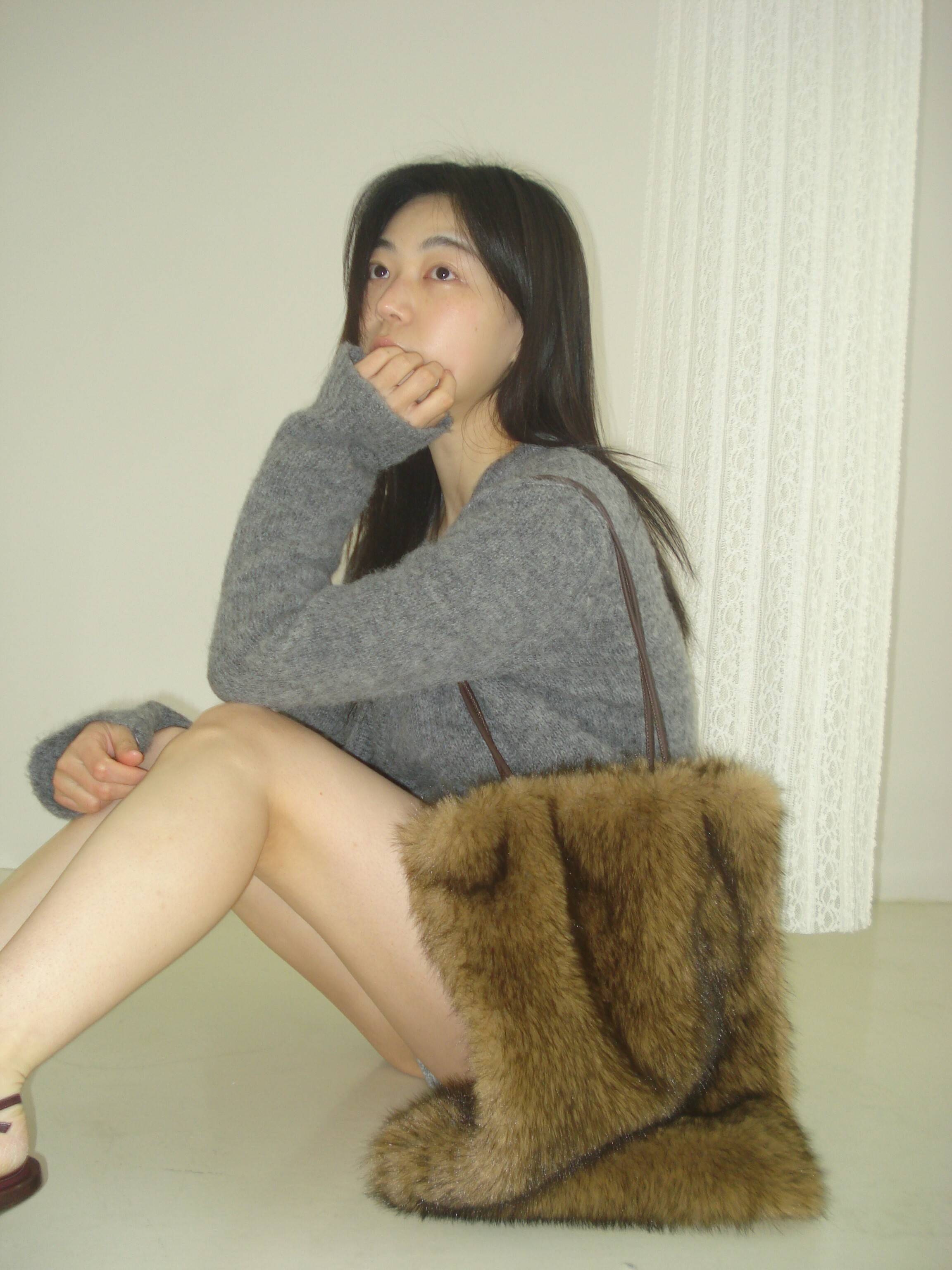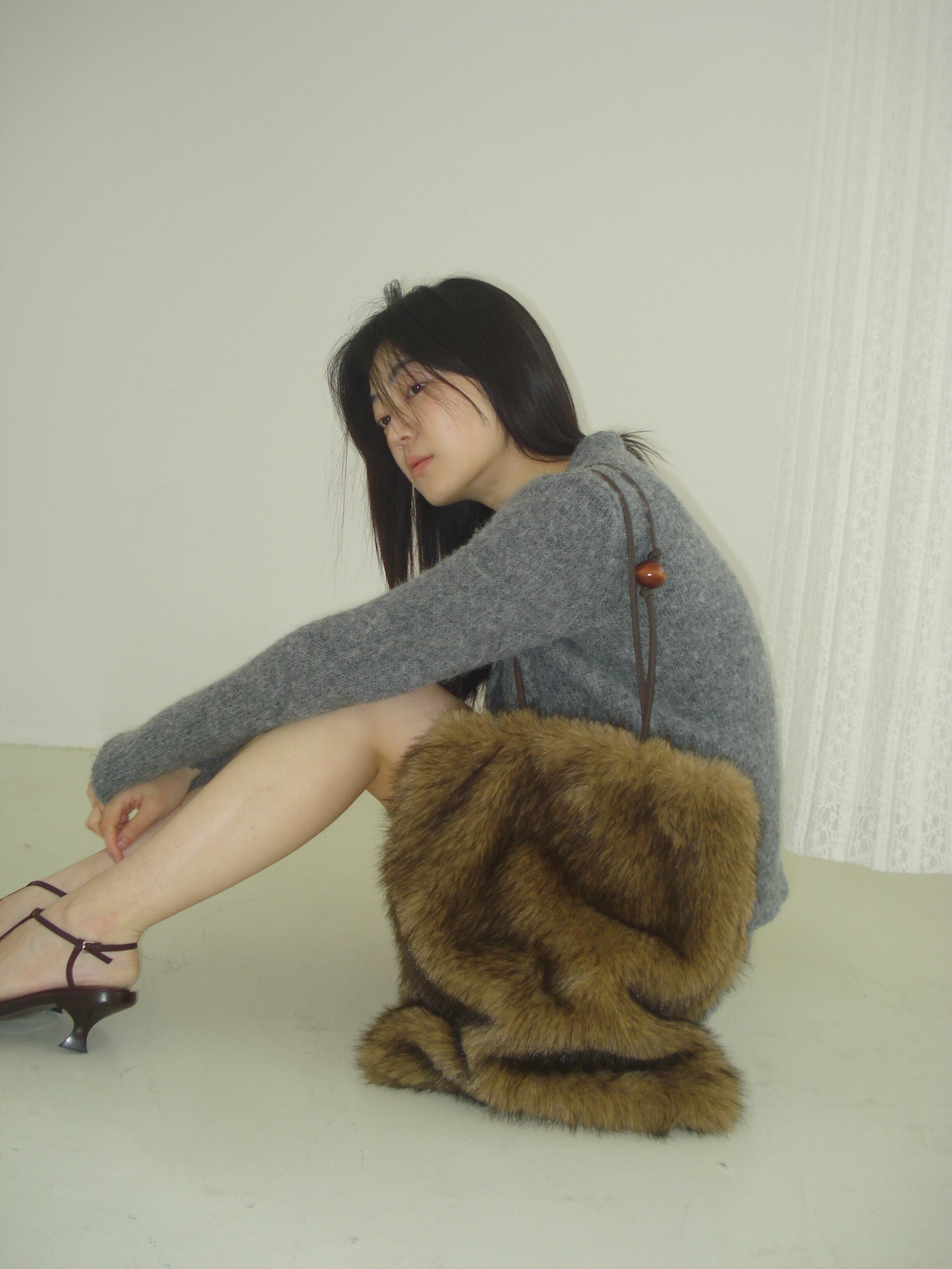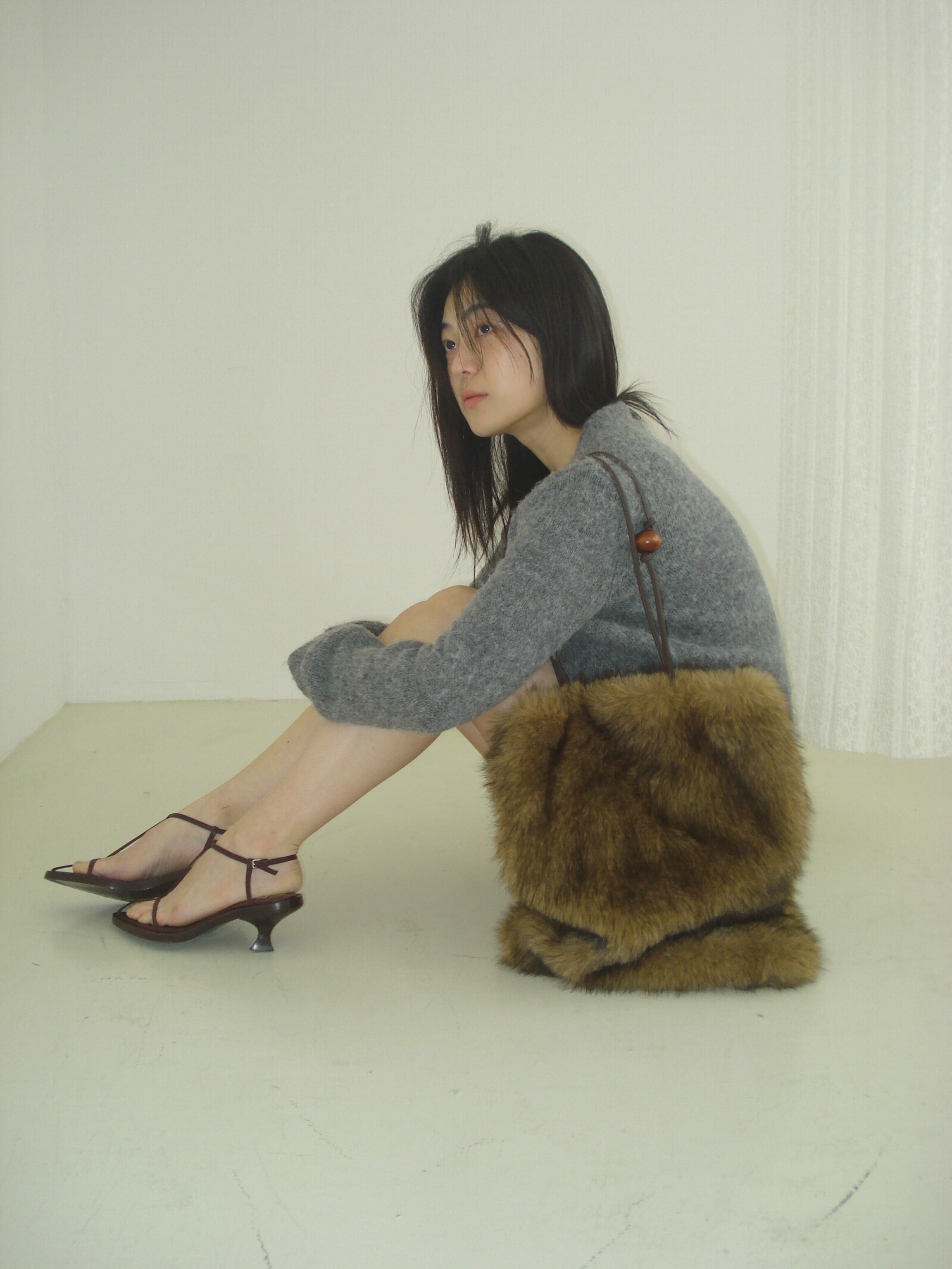 Wood ball Fur bag [Brown]