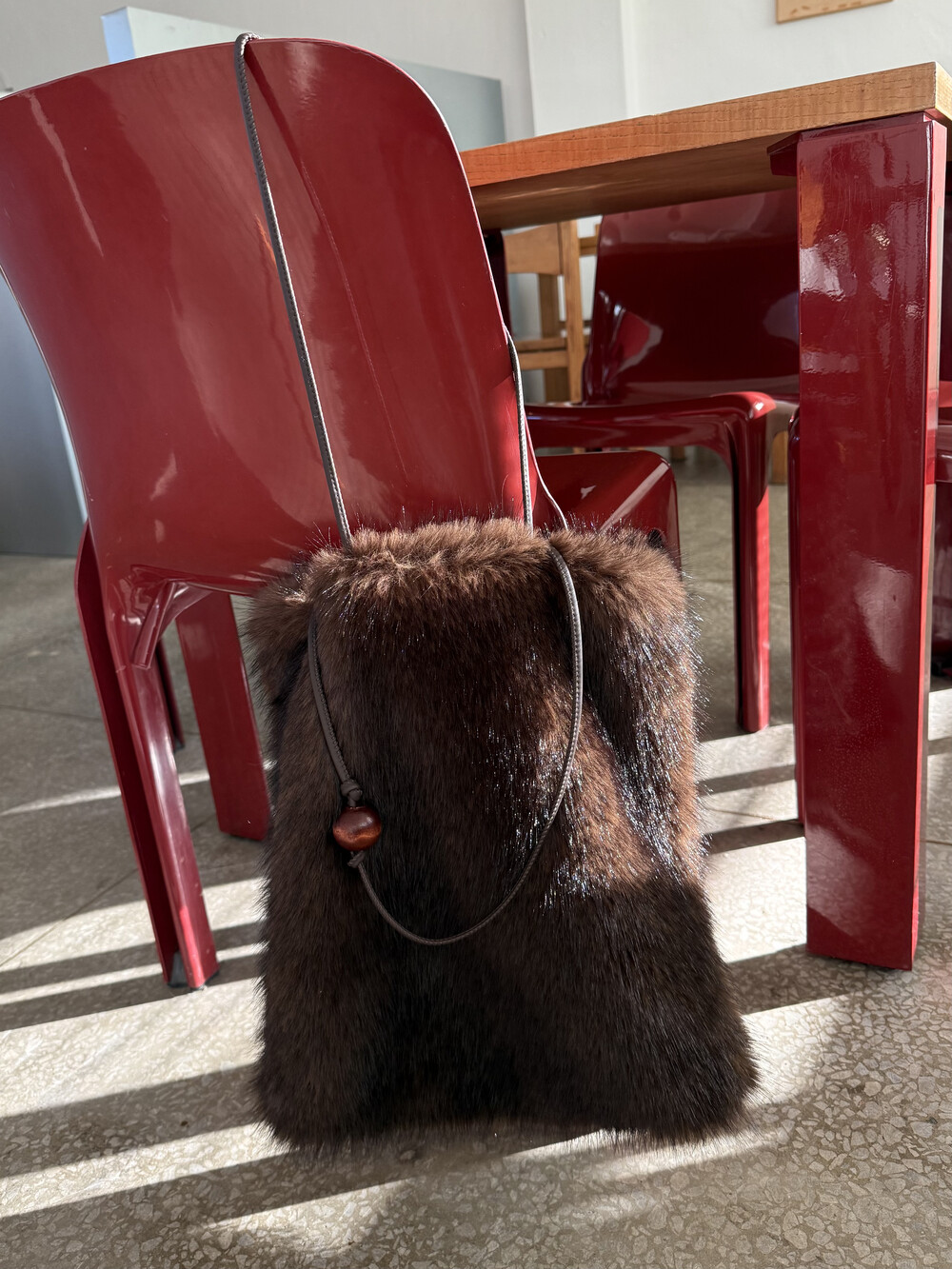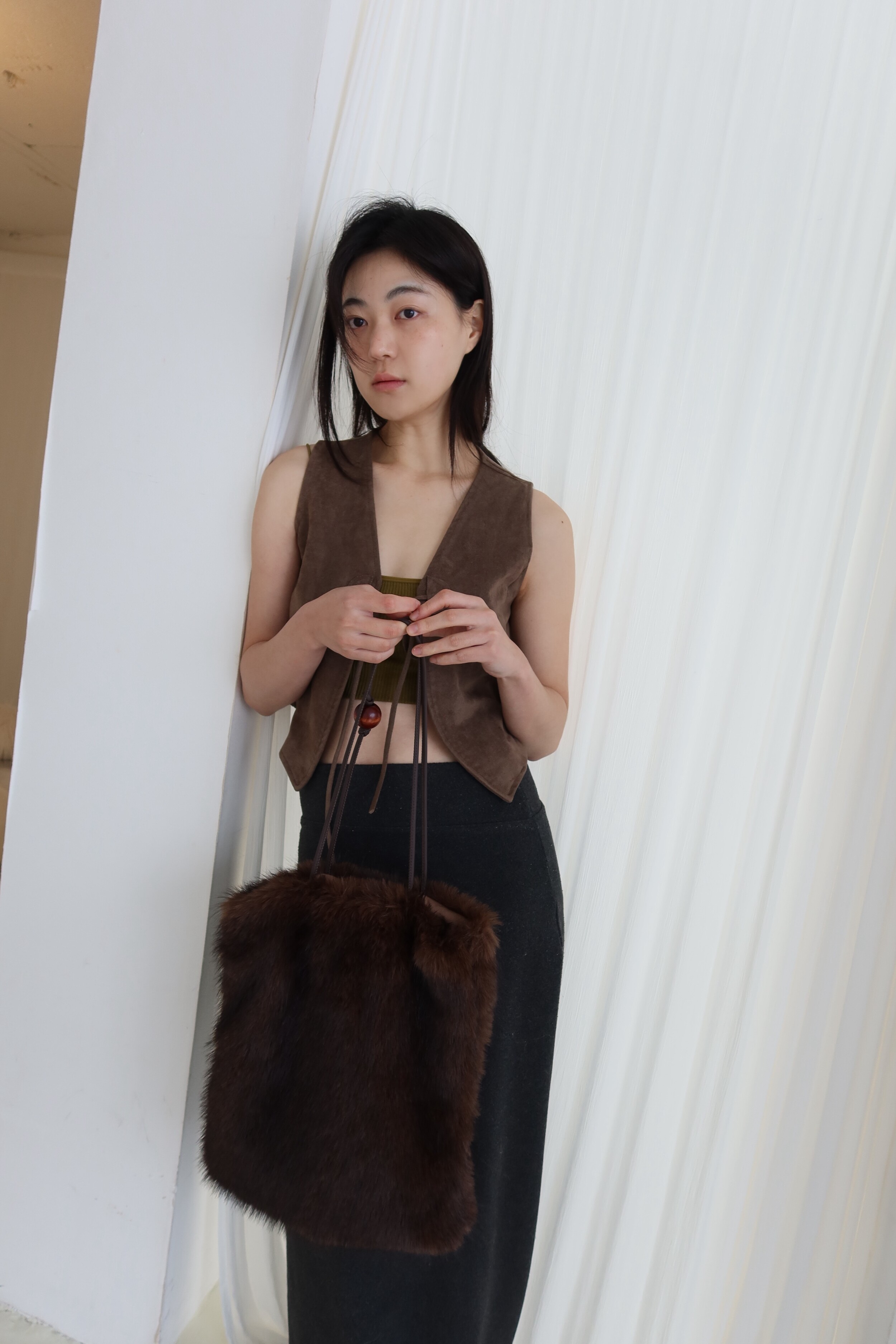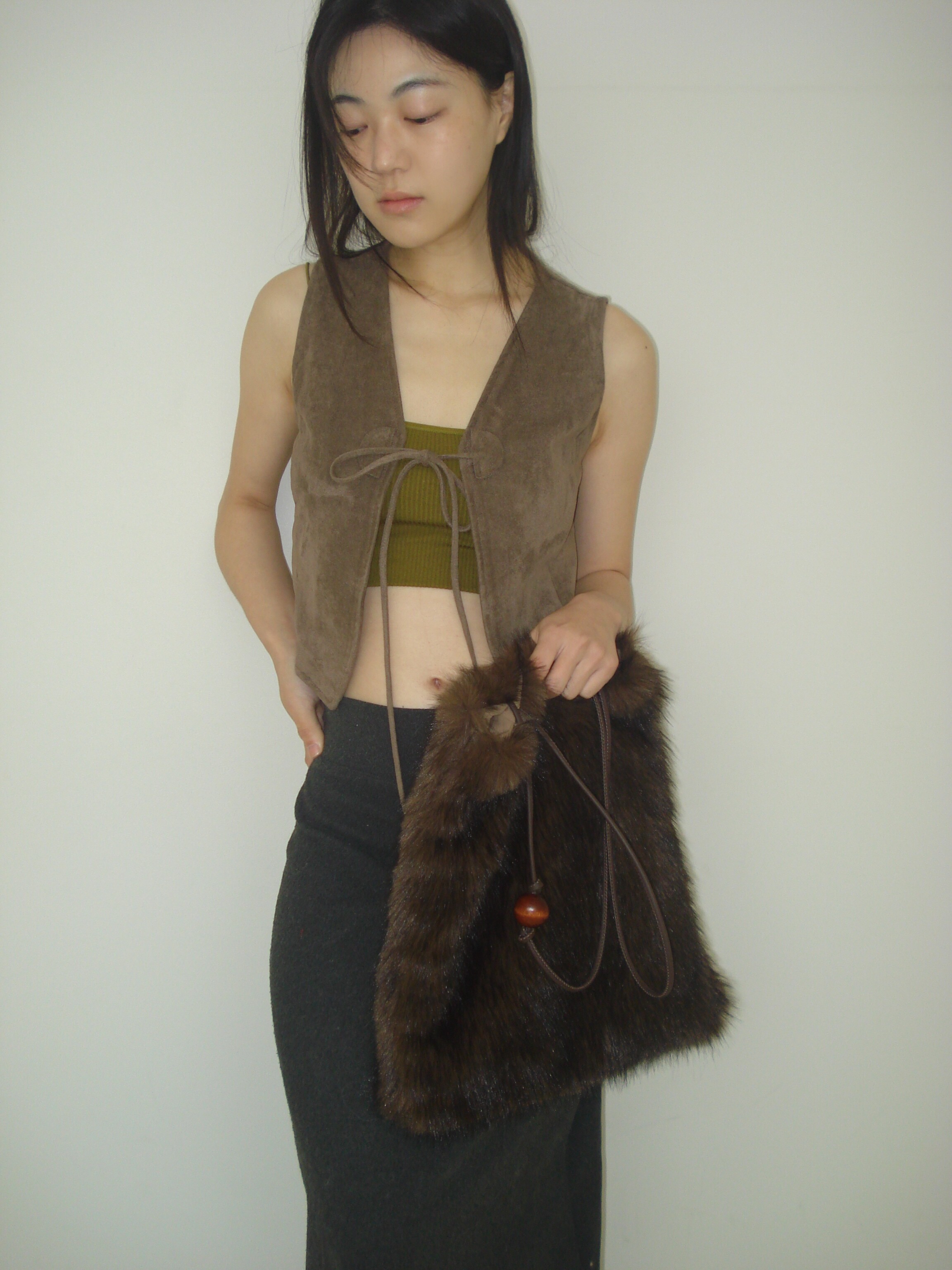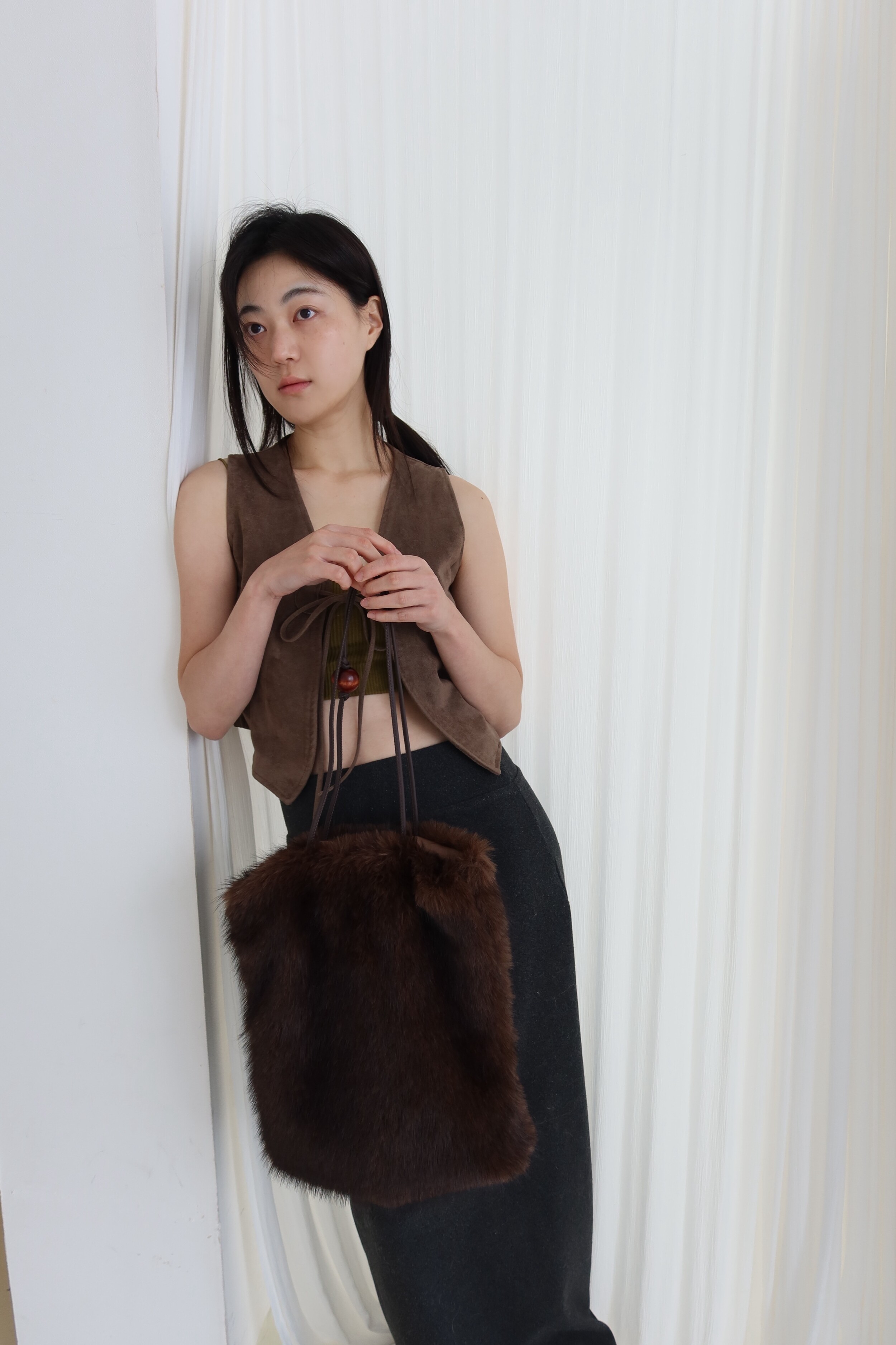 Wood ball Fur bag [Dark brown]