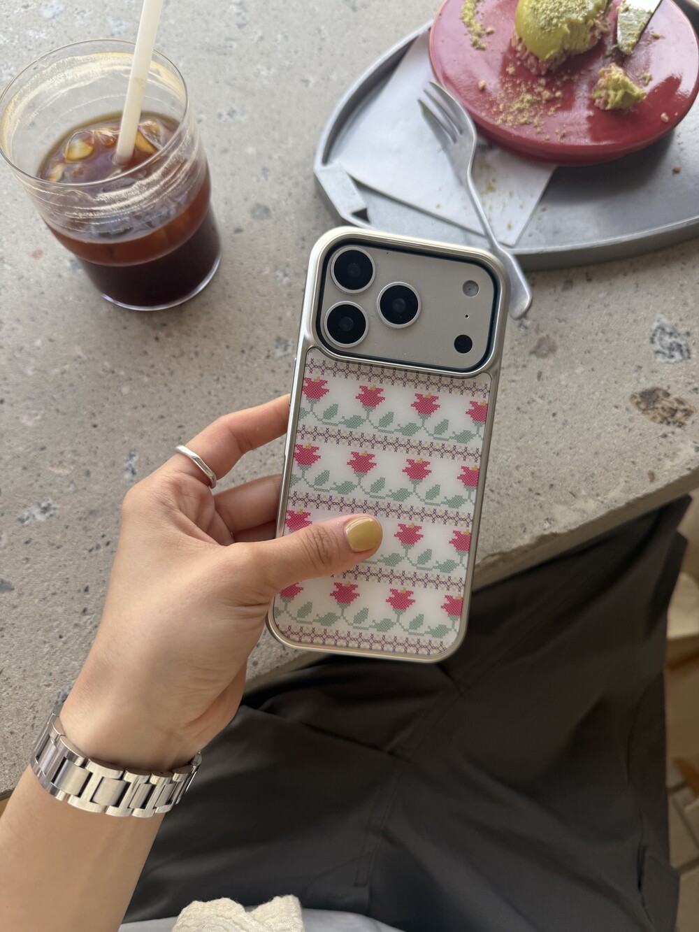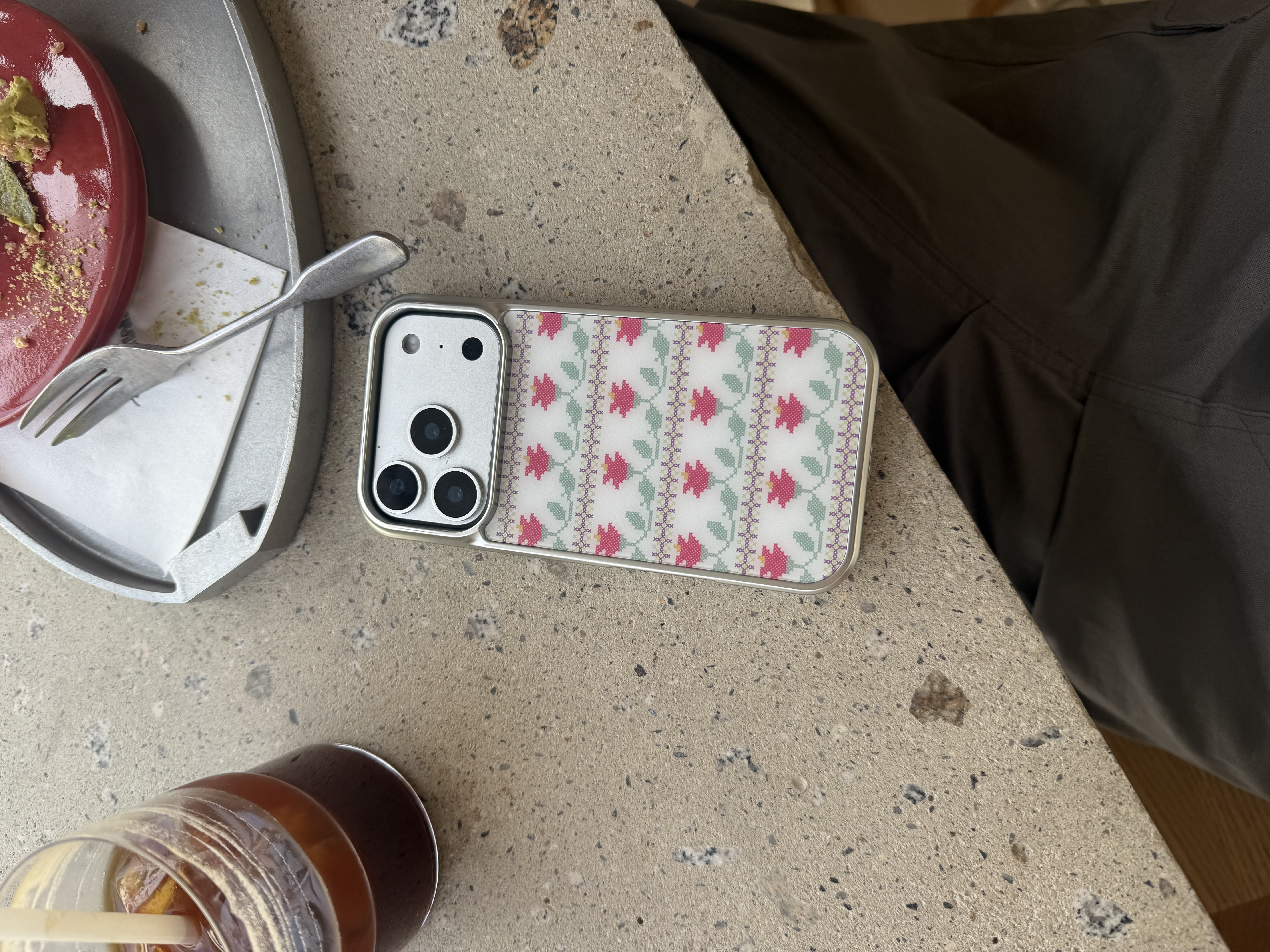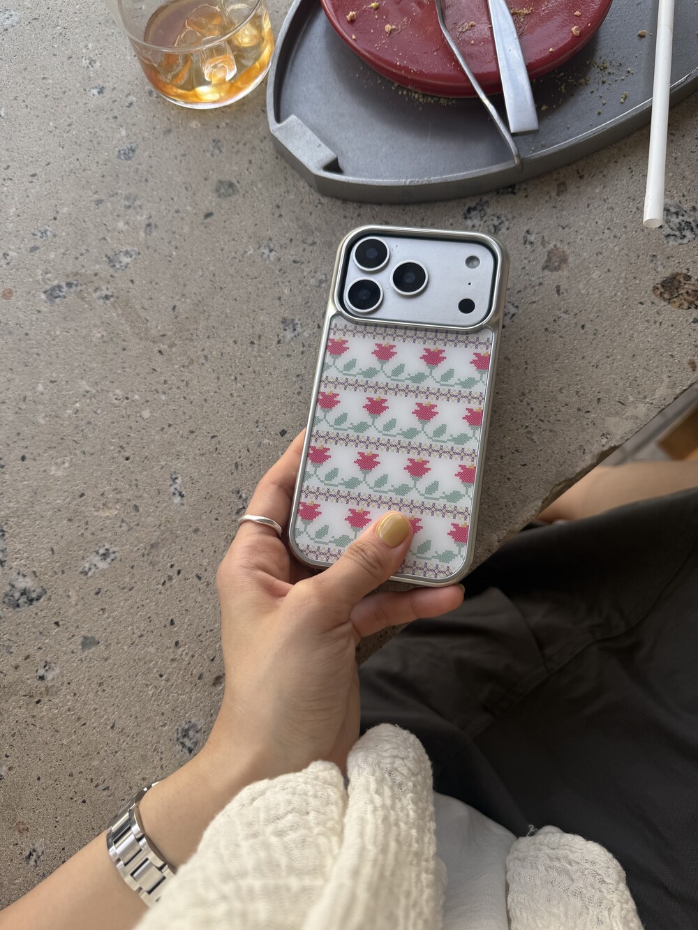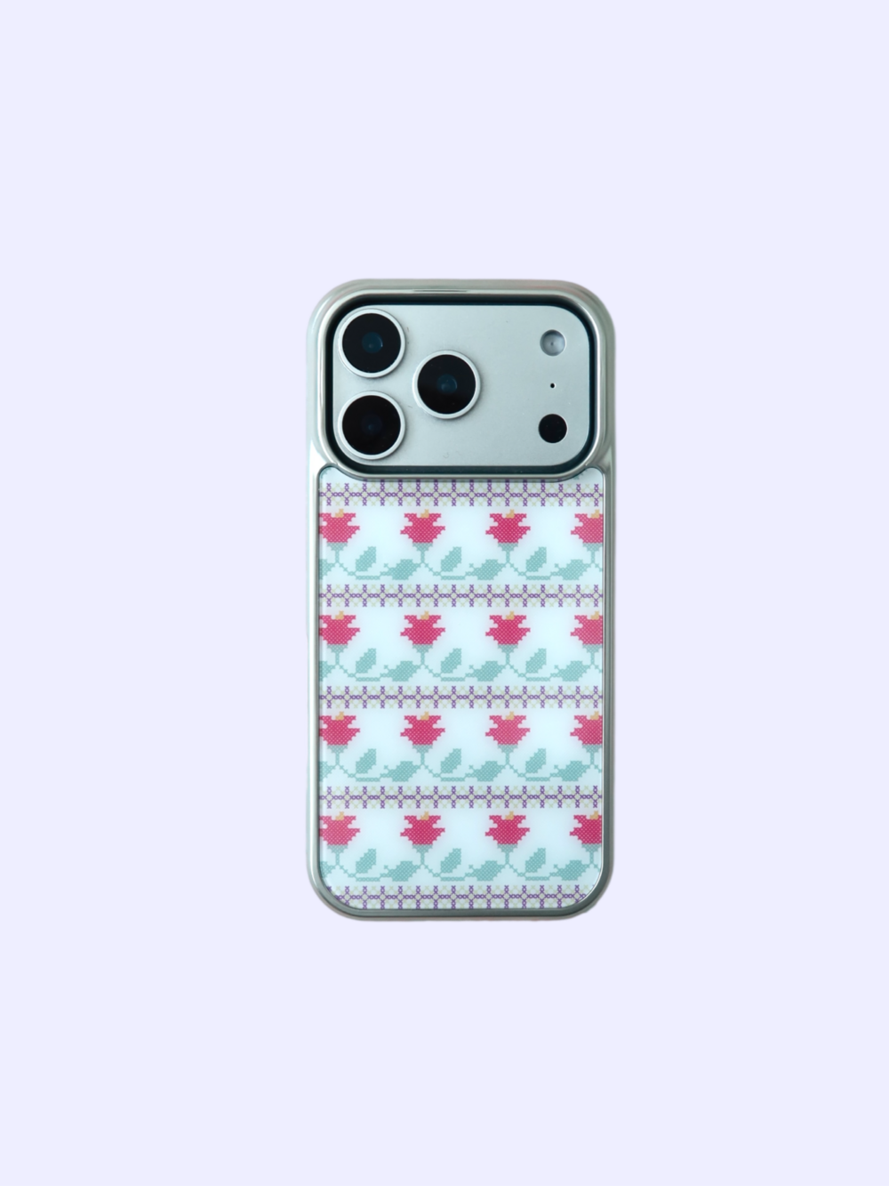CROSS STITCH silver matte glass bumper case [TULIPS]