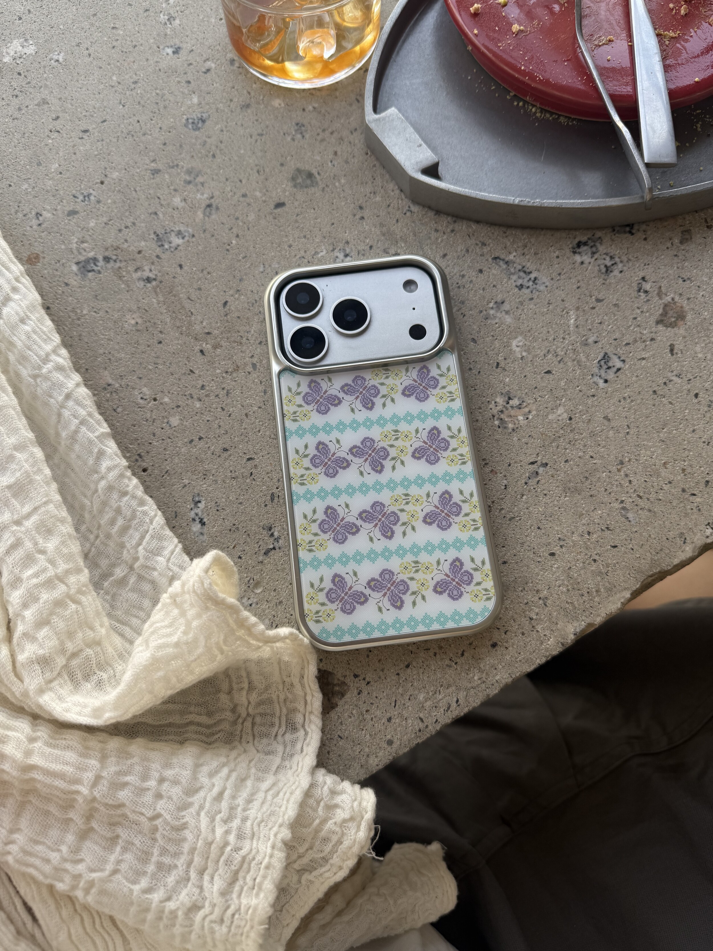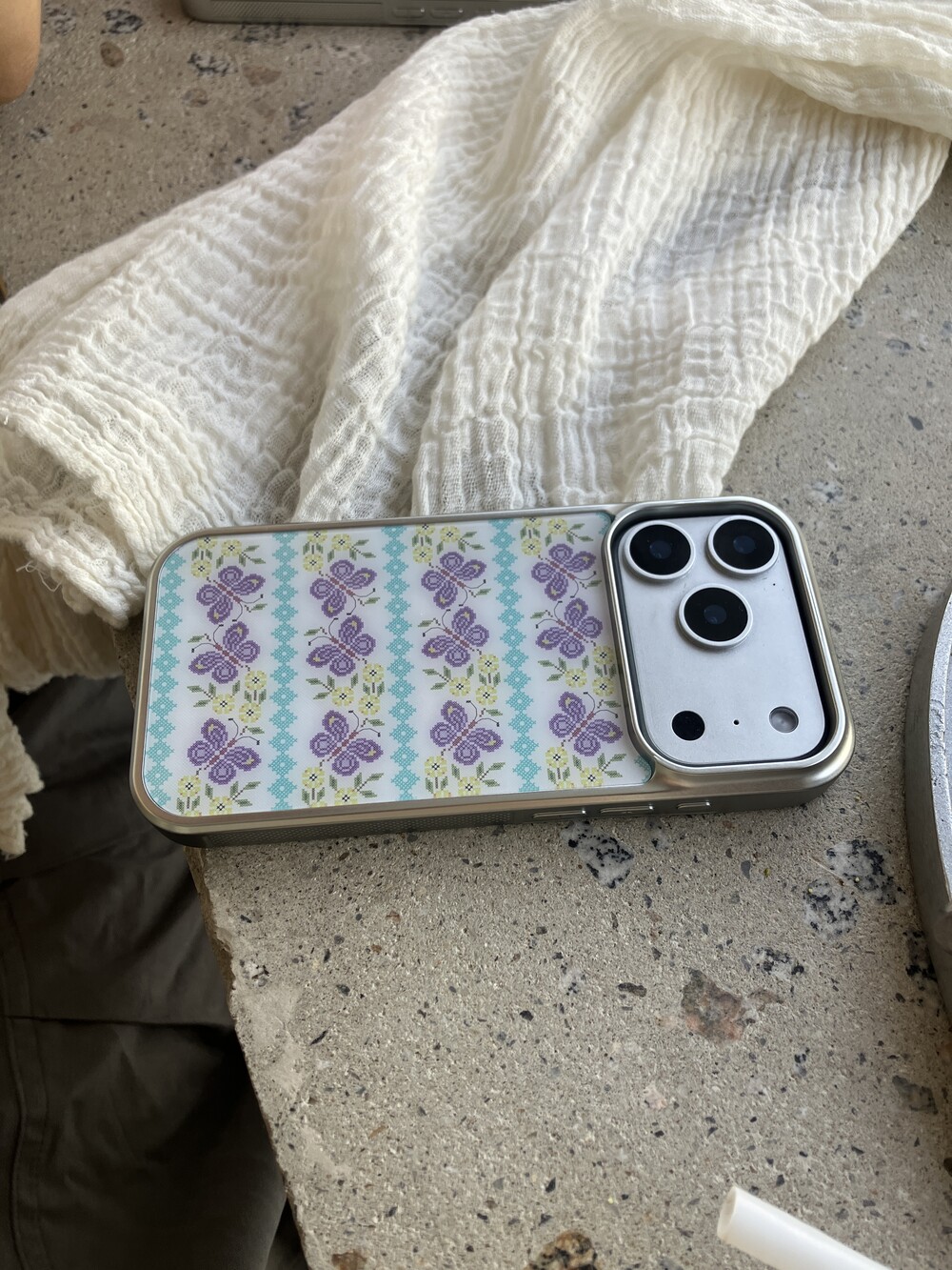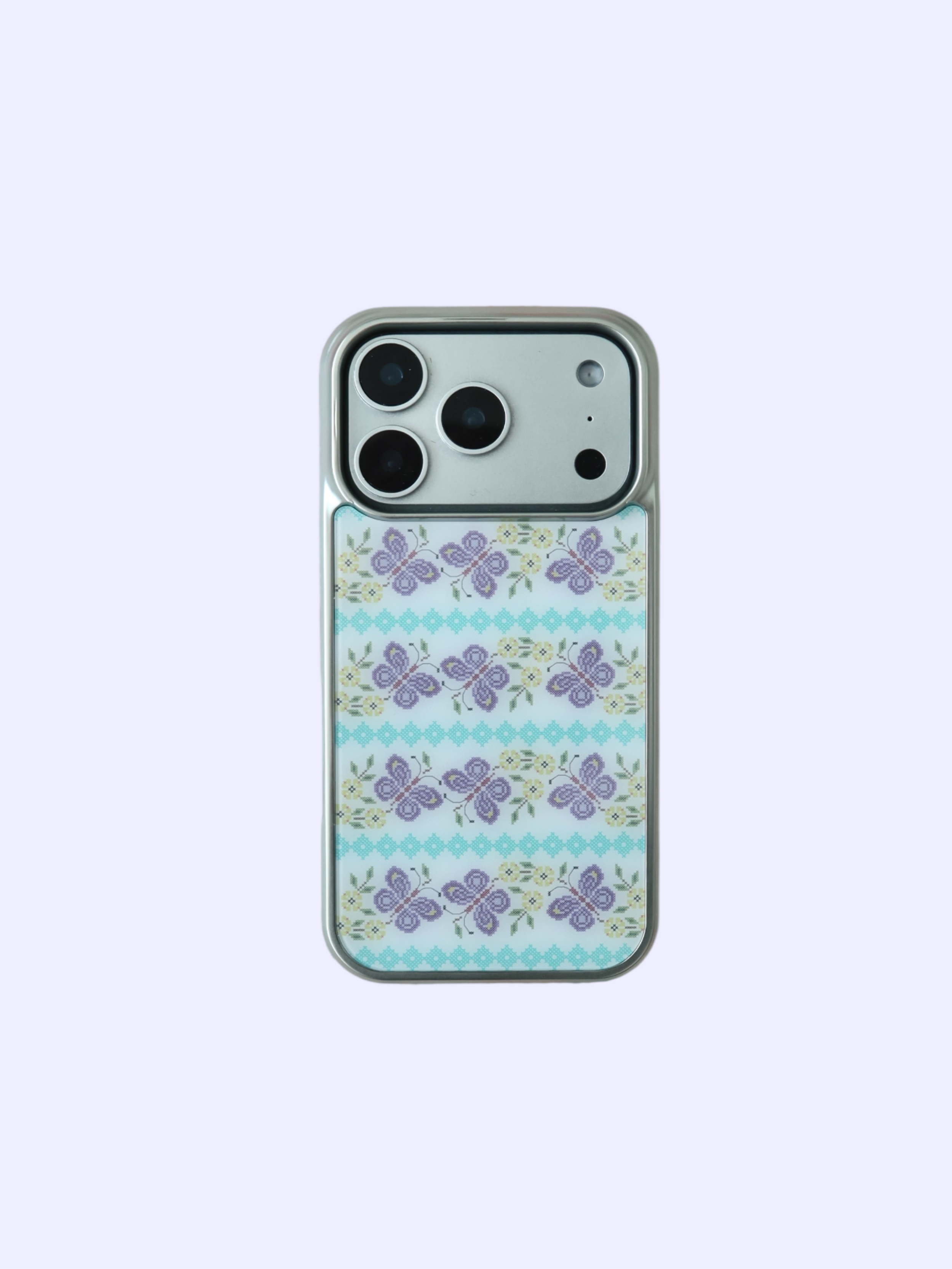 CROSS STITCH silver matte glass bumper case [BUTTERFLIES]